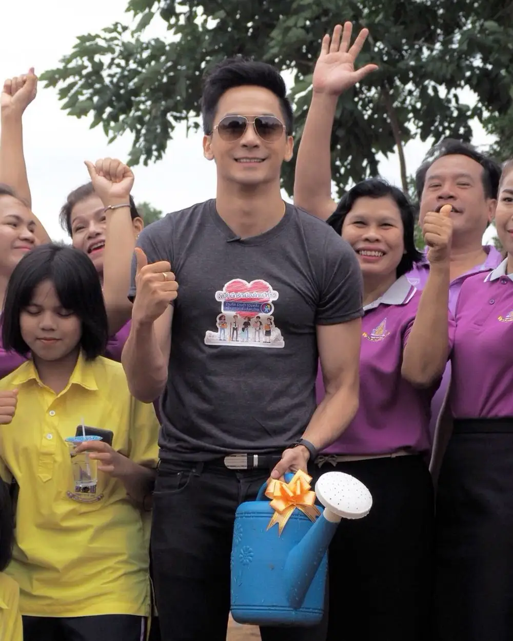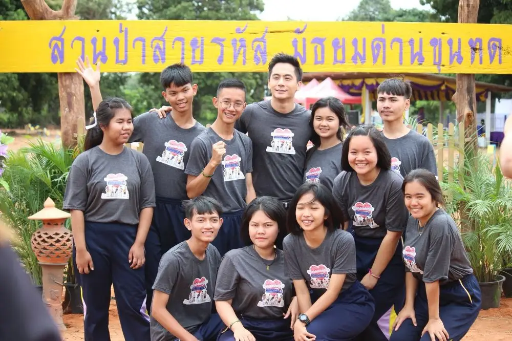 “พี่จอร์จอยากจะบอกกับน้องๆ ว่าดีใจ ดีใจมากๆ ครับ ที่วันนี้ได้มาร่วมหวงป่าตามรอยพ่อกับน้องๆ มัธยมด่านขุนทด ที่โคราช ต้องบอกเลยว่าน้องๆ ทั้งหมดที่ร่วมมือกันทำกิจกรรมในวันนี้ก็คืออนาคตของชาติในวันข้างหน้า การช่วยกันดูแลต้นไม้สายรหัส ส่งต่อกันจากรุ่นสู่รุ่น ได้ปลูกต้นคูณสายรหัสจำนวน 400 ต้น ที่ได้รับความร่วมมือจากหน่วยงานที่เกี่ยวข้อง สำนักงานปลัดกระทรวงกลาโหมเป็นอย่างดี ผู้อำนวยการโรงเรียนมัธยมด่านขุนทดด้วย สิ่งต่างๆ เหล่านี้ถ้าเรามีจิตสำนึกที่จะรักชุมชนของเรา และลงมือทำน้องๆ จะได้ชื่อว่าได้ช่วยเหลือสังคมอย่างแท้จริง แล้วความภูมิใจจะเกิดขึ้นในหัวใจของเราเองอยู่แล้ว ต้องขอบคุณสำนักปลัดกระทรวงกลาโหมที่มีแคมเปญดีๆ แบบนี้ โครงการจิตสำนึกรักเมืองไทยปีที่ 10 , พี่ตุ๊กตา จิตรลดา กันตนา ที่เป็นเหมือนครอบครัวของจอร์จที่ริเริ่มสร้างจิตสำนึกดีๆ ให้กับเรามาตลอด” นักแสดงหนุ่มกล่าว
