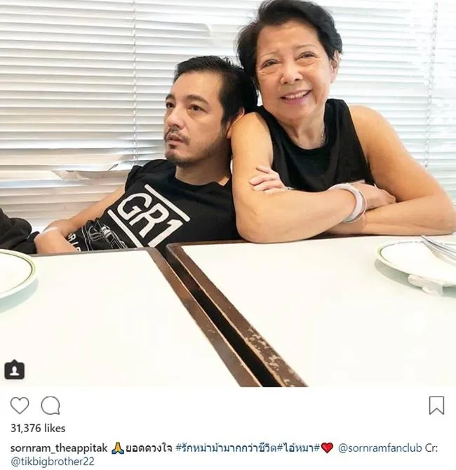 ทางหนุ่ม ศรราม ก็ได้ลงรูปคู่กับคุณแม่ พร้อมแคปชั่น "ยอดดวงใจ #รักหม่าม้ามากกว่าชีวิต#ไอ้หมา# @sornramfanclub Cr: @tikbigbrother22" ประกาศว่ารูปนี้สาวติ๊ก เป็นคนถ่ายให้ และแสดงความชัดเจนว่า มีพาหวานใจไปพบกับคุณแม่แล้วนั่นเอง