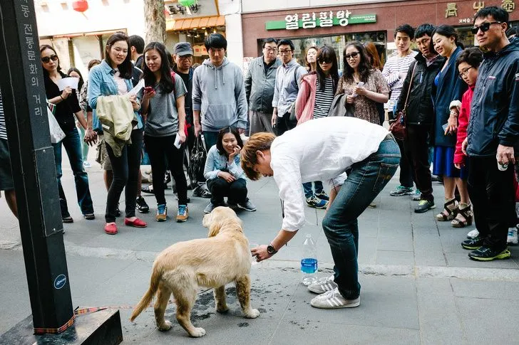หมาตัวใหญ่อยู่ในที่สาธารณะไม่ใช่เรื่องธรรมดา ผํ้ชายคนหนึ่งผูกหมาใว้เพื่อจะเข้าห้องน้ำ แล้วกลับมาพบแบบนี้