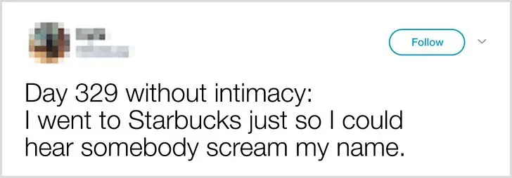 14. คนนี้บอกว่า"329วันโดยที่ไม่สนิทสนมกับใครเลยเลย ฉันจึงไปร้านสตาร์บัคส์แค่เพื่อจะได้ยินใครสักคนตะโกนชื่อฉัน"