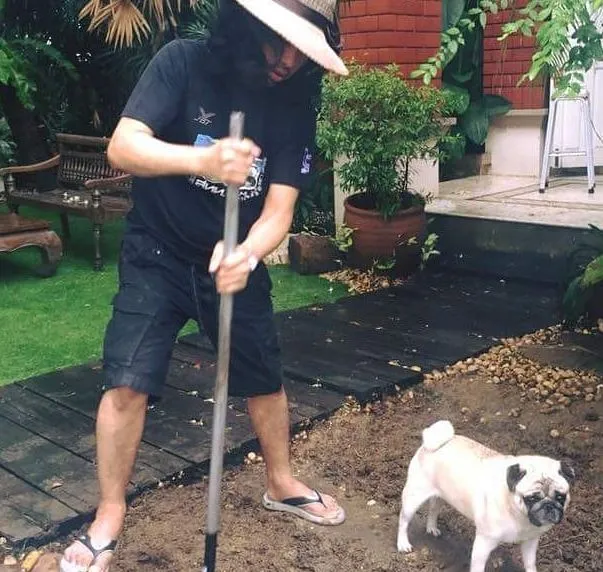 บริเวณหน้าบ้าน คุณเสก ขยันเหมือนกันนะเนี่ย