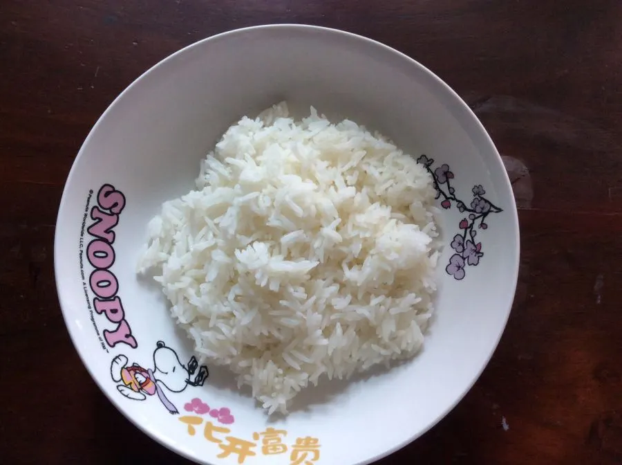ใส่ข้าวสวย ใส่น้ำมันหอย ซอสปรุงรส นิดหน่อย
