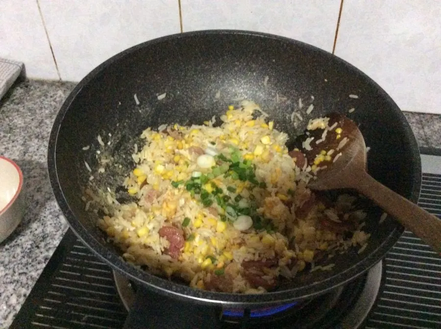 กุนเชียง แหนม ไข่ ต้นหอมค่ะ เอามาทำข้าวผัดซะเลย
