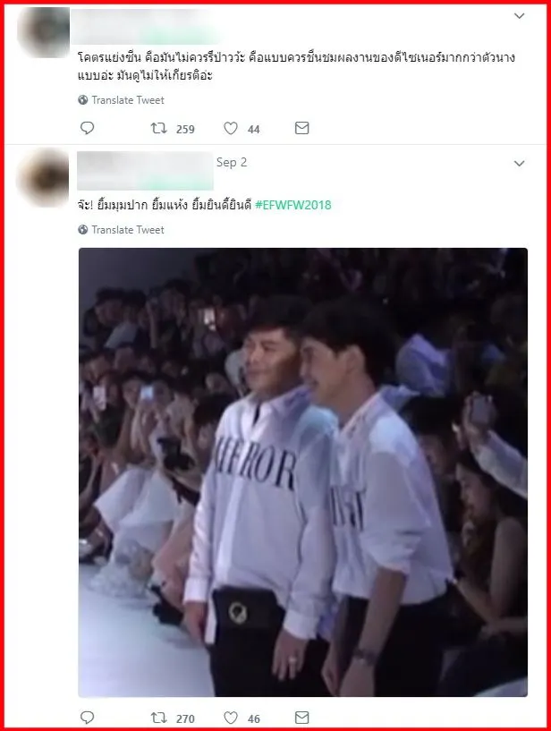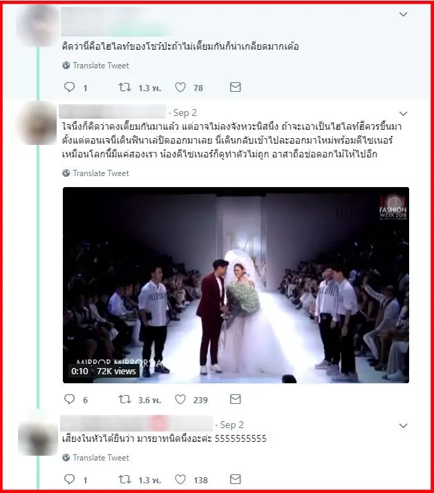 “โคตรแย่งซีน คือมันไม่ควรรึป่าวว้ะ คือแบบควรชื่นชมผลงานของดีไซเนอร์มากกว่าตัวนางแบบอ่ะ มันดูไม่ให้เกียรติอ่ะ”