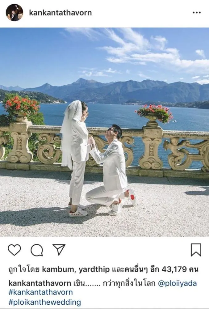 ท่ามกลางบรรยากาศสุดโรแมนติก ริมทะเลสาบโคโม ประเทศอิตาลี ถึงจะคบหาดูใจกันมานานหลายปี และกำลังจะแต่งงานใช้ชีวิตคู่ด้วยกันแล้ว แต่ที่ผ่านมา หนุ่มกันต์ ยังไม่เคยขอแต่งงานอย่างเป็นทางการสักที ซึ่งเป็นโมเม้นท์ที่ สาวพลอย ใฝ่ฝันเอาไว้ว่าครั้งหนึ่งในชีวิตอยากถูกขอแต่งงานแบบนี้ ทำเอาเจ้าสาวถึงกับน้ำตาแตก ร้องไห้หนักมว้ากกกที่ หนุ่มกันต์ ทำเซอร์ไพรส์สำเร็จ เพื่อนๆ ที่ไปเป็นสักขีพยานก็น้ำตาซึมและปลื้มปริ่มร่วมยินดีไปด้วย โดยทั้งคู่โพสต์ภาพและแคปชั่นหวานๆ ถึงกันเอาไว้ว่า