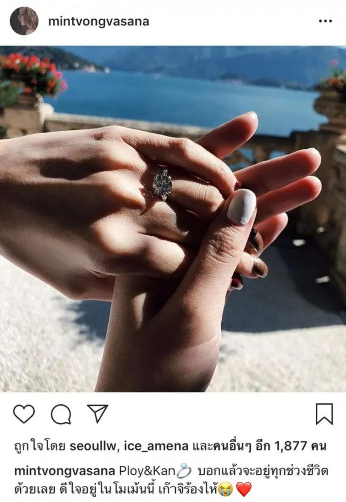 กันต์ "เขิน.......กว่าทุกสิ่งในโลก พลอยอยากได้โมเม้นท์นี้มาตลอด วันนี้กันต์คุกเข่าขอพลอยแต่งงานแล้วนะ...รักมากนะจ๊ะ" พลอย "And i said Yessssss Love u to the moon and back bie U totally completed my dream. My life and my soul... is now yours ร้องไห้หนักมากกกก ในที่สุดบี๋ก็ทำเซอร์ไพรส์สำเร็จจจจ ขอบคุณนะบี๋ ไม่คิดว่าจะได้โมเม้นท์นี้เหมือนคนอื่นเค้า ร้ากกกกก"