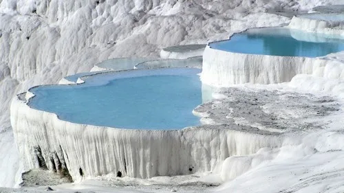 เป็นสระว่ายน้ำที่สวยงามของเมือง Pamukkale ถือเป็นหนึ่งในไฮไลท์ที่สำคัญของสถานที่ท่องเที่ยวในประเทศตุรกี โดยคำว่า Pamukkale นั่นหมายถึง “ปราสาทปุยฝ้าย” มีน้ำตกหินปูนสีขาวที่เกิดขึ้นจากธารน้ำใต้ดินที่มีอุณหภูมิประมาณ 35 องศาเซลเซียส ลักษณะคล้ายปราสาท มีประกาย สีขาวสวยงาม