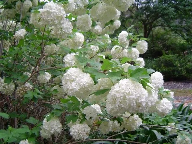 4. ต้น Guelder rose หรือ viburnum opollus ต้นไม้ที่มีดอกไม้สีขาวเป็นพวงกลมๆ ช่วยสร้างสีสันให้กับสวนสวยของคุณได้ไม่น้อย