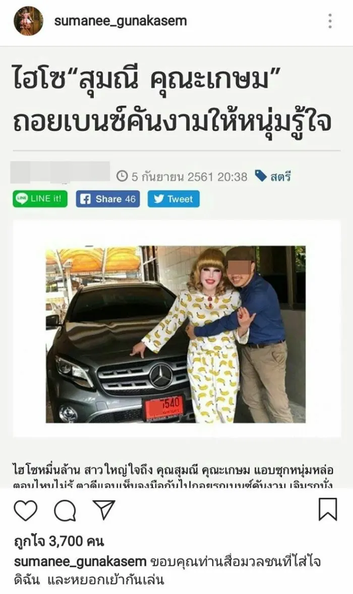 ไฮโซสุมณี คุณะเกษม ตอบนิ่ม ๆ หลังเจอข่าวถอยรถเบนซ์ให้หนุ่ม