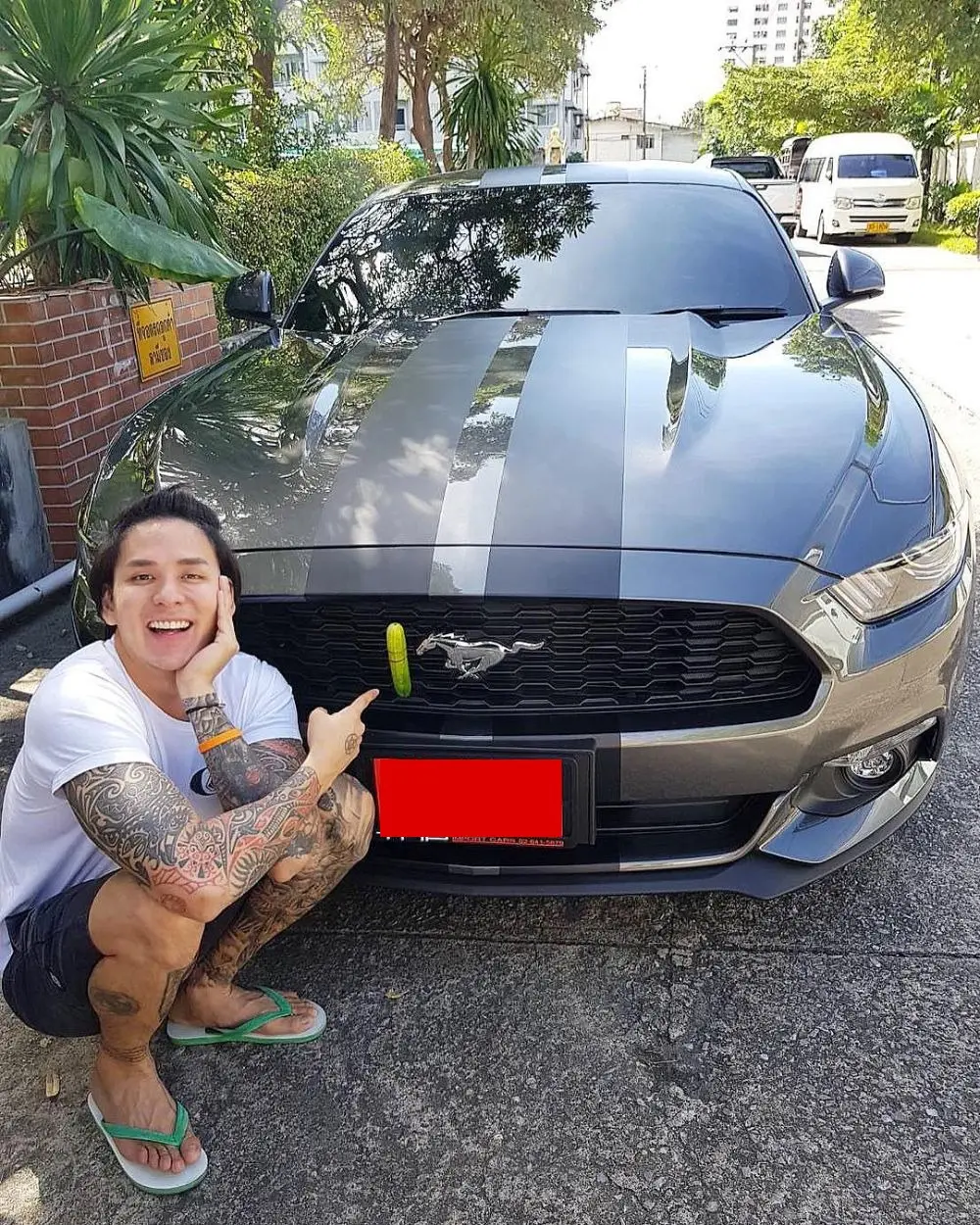 ดาราหนุ่มมาดแบดบอย ที่ขยันทำงาน เริ่มทำธุรกิจใหม่ผลิตภัณฑ์ดูแลท่านชาย จากบุคลิกก็เข้ากับรถใหม่ที่เป็นแนวมัสเซิลคาร์ ไว้ลายมาดกวนโชว์ภาพมัดแตง ล้อชื่อรุ่นรถฟอร์ด มัสแตง ราคาเริ่ม 2.6 ล้านบาท