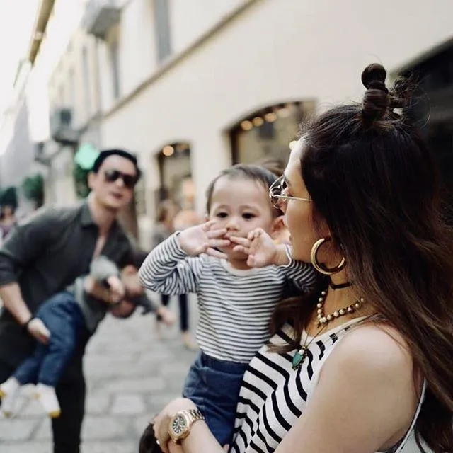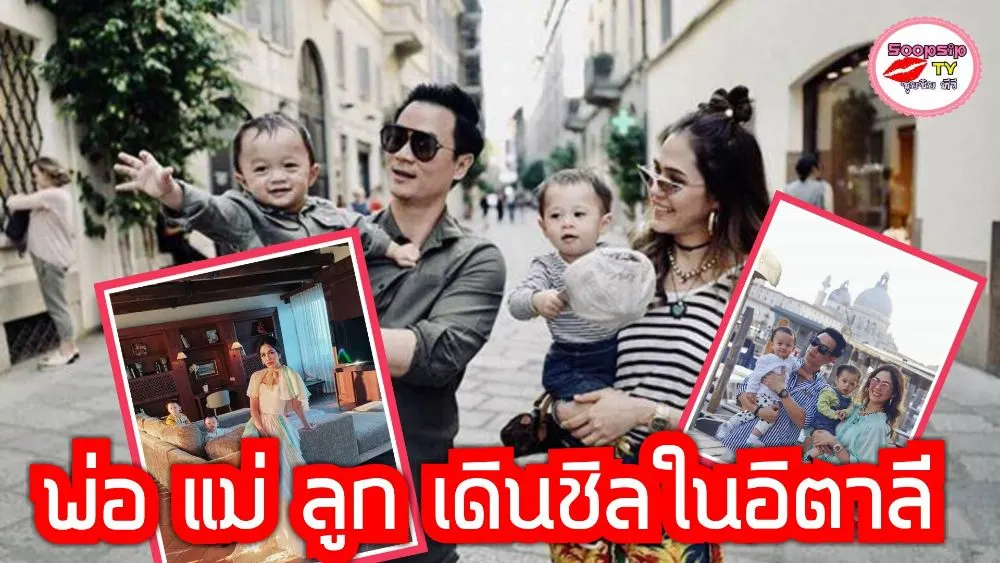 "ชมพู่-น็อต" อุ้ม "สายฟ้า-พายุ" เดินชิลชมเมืองอิตาลี พ่อแม่ลูกแต่งตัวเป็นคู่