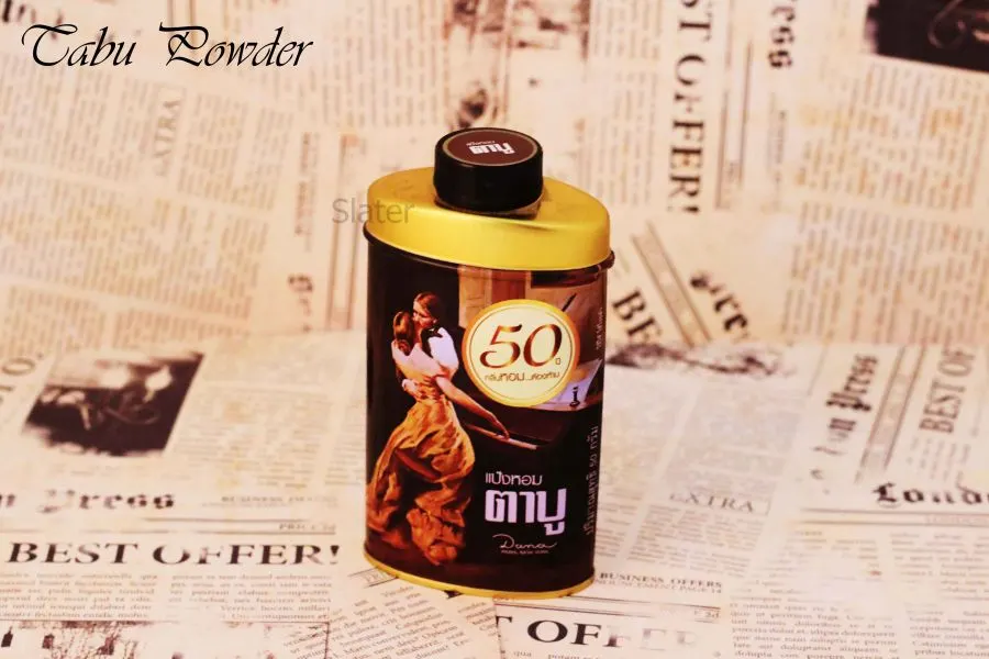 แป้งหอม ตาบู แป้งประจำตัวผู้ชาย มาตั้งแต่สมัยรุ่นคุณตาเรา คุณพ่อเราค่ะ ถือเป็นกลิ่นที่แมนมากๆ ในสมัยก่อนถ้าเทียบกับแป้งตัวอื่นๆที่กลิ่นจะออกดอกไม้ๆอบอวลนะคะ สำหรับเราแป้งตาบูนี้กลิ่นสุดยอดจริงๆ เป็นเอกลักษณ์มากๆ อธิบายไม่ถูกแต่มันมีความเป็นกำยาน เครื่องเทศ ผสมดอกไม้ อยู่ค่ะสมัยนี้มีการทำเป็นครีมอาบน้ำออกมาแล้วด้วย ถือว่าอยู่ยงคงกระพันจริงๆกับแป้งหอมแบรนด์นี้