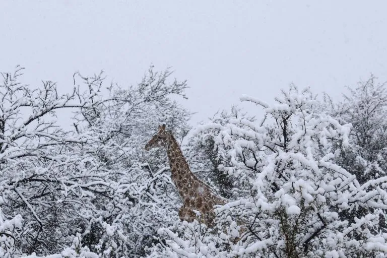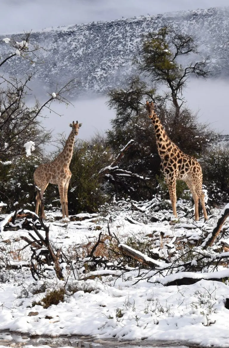 เป็นอะไรที่ไม่ค่อยได้เห็นกันบ่อยๆ สำหรับเหตุการณ์พายุหิมะประหลาดที่ตกลงมาอย่างหนักในแอฟริกาใต้ ส่งผลให้ยีราฟ ช้าง และละมั่ง ที่อาศัยอยู่ภายในแถบทุ่งหญ้าสะวันนา เขตสงวนพันธุ์สัตว์ป่า Sneeuberg ต้องได้รับความเดือดร้อนจากสภาพอากาศหนาวจัดผิดปกติหลังเกิดหิมะตกลงมาอย่างหนัก