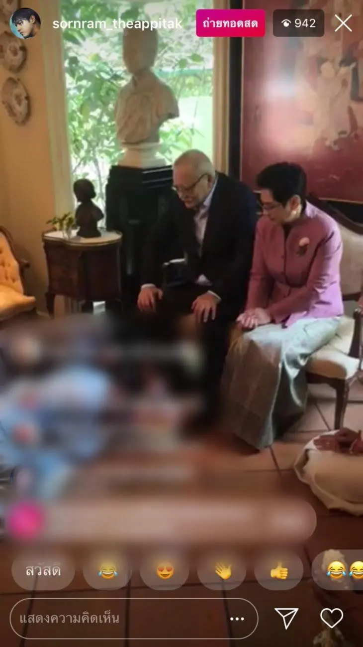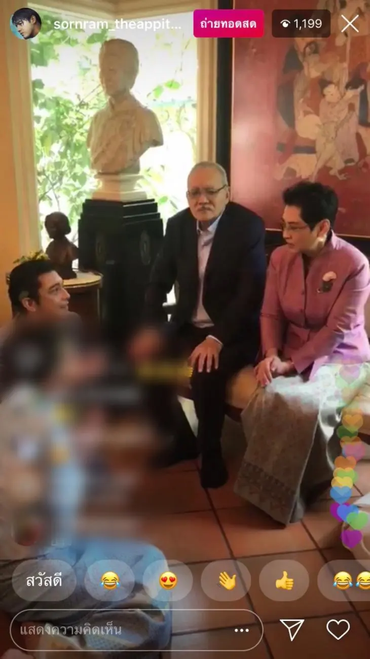 โดยมีคุณแม่ มยุรี เทพพิทักษ์ ของฝ่ายชาย และผู้ใหญ่ ท่านมุ้ย หม่อมเจ้าชาตรีเฉลิมและภริยา หม่อมกมลา ยุคล ณ อยุธยา รวมทั้งแขกผู้ใหญ่อย่างพระเอกรุ่นใหญ่ สรพงษ์ ชาตรี และภรรยา ดวงเดือน จิไธสงค์