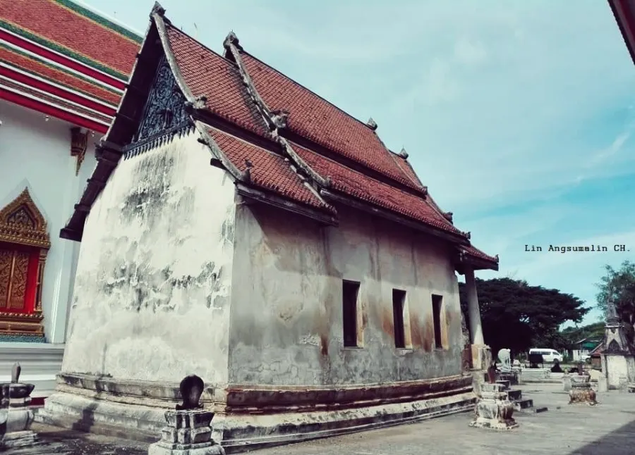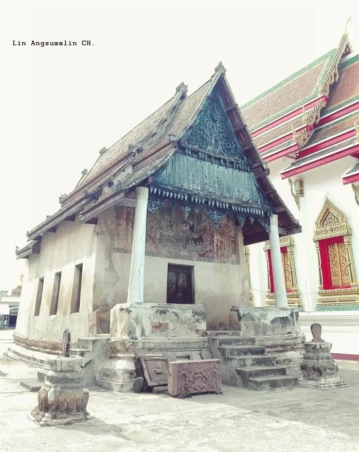 นี้คือโบสถ์เก่าค่ะ..โบสถ์นี้ฐานโบสถ์มีลักษณะแอ่นโค้ง ศัพท์ทางช่างเรียก ตกสำเภาทอง หรือ ท้องช้าง หรือทองเชือก