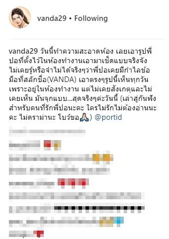 "วันนี้ทำความสะอาดห้อง เลยเอารูปพี่ปอที่ตั้งไว้ในห้องทำงานเอามาเช็ดแบบจริงจัง ไม่เคยรู้หรือจำไม่ได้จริงๆ ว่าพี่ปอเคยมีกำไลข้อมือที่สลักชื่อ (VANDA)"