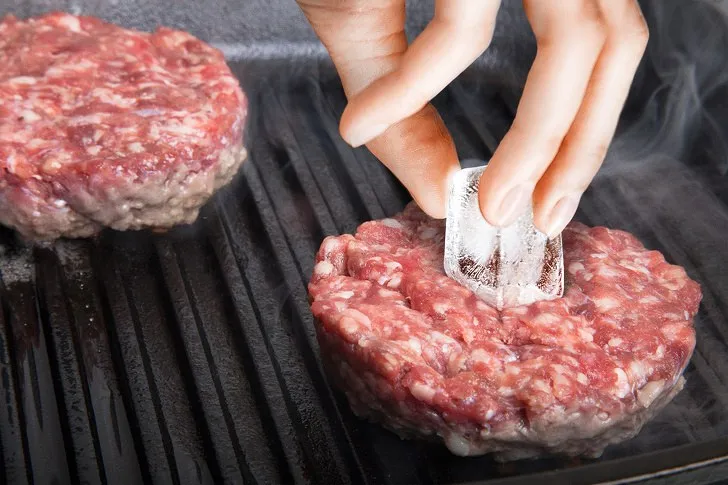 เพียงวางน้ำแข็งก้อนในใจกลางของเนื้อสัตว์จะช่วยให้สุกไว แถมเนื้อไม่แข็งกระด้าง