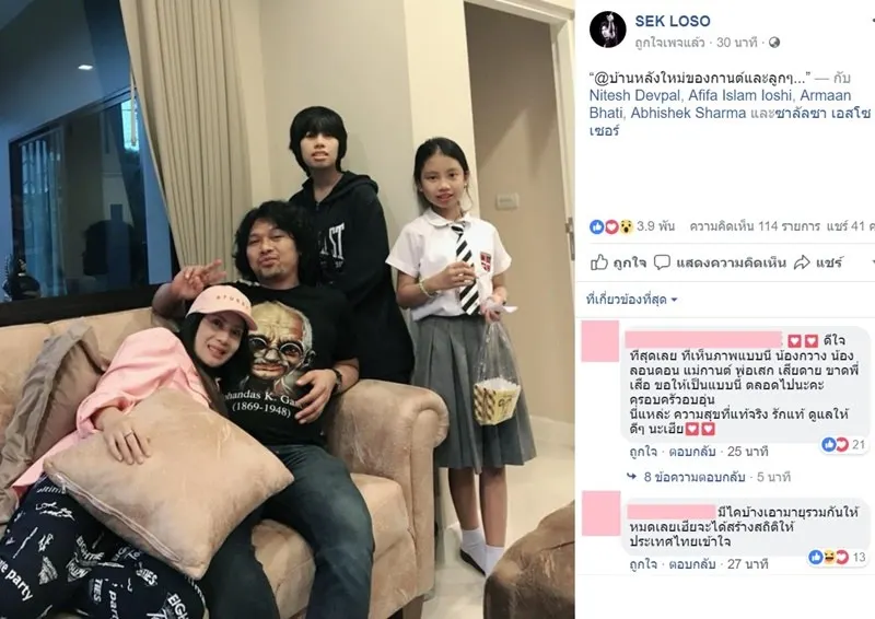 น่าเสียดายที่ในภาพขาดลูกชายคนโตไปหนึ่งคนเพราะไปเรียนต่อต่างประเทศ มีแฟนคลับเข้ามาคอมเมนต์อยากเห็นภาพครอบครัวบ่อยๆ รอชมนะคะ