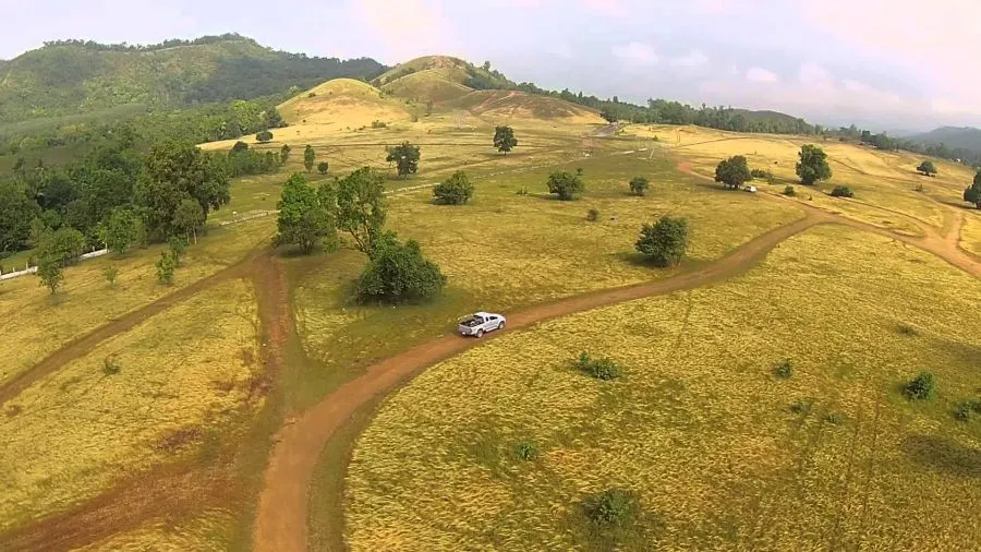 ต่อมาคือภูเขาใหญ่ที่ไม่มีต้นไม้ใหญ่เลย หากใครมาตรงกับฤดูฝนทุ่งหญ้าแห่งนี่ก็จะเขียวขจีสวยงามมาก ที่นี่เหมาะกับการไปบนสันเขาเพื่อชมวิว ถ่ายรูป และนั่งดูพระอาทิตย์ตก เมื่อแสงส่องลงมา ภูเขาทั้งลูกก็จะกลางเป็นสีเหลืองอร่ามตา จึงได้รับฉายาว่า ภูเขาหญ้าสองสี นั้นเอง