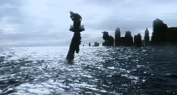 ภาพยนตร์ที่แนวไซไฟของผู้กำกับ สตีเฟน สปีลเบิร์ก ที่มีชื่อไทยว่า “จักรกลอัจฉริยะ” ที่แสดงให้เราเห็นถึงผลลัพธ์ของสภาวะโลกร้อนที่ส่งผลให้เกิดน้ำท่วมโลก และถ้าหนังจะทำให้เราเห็นภาพความเสียหายของนครนิวยอร์ก สิ่งเดียวที่เป็นตัวแทนได้อย่างดีก็คือเทพีเสรีภาพนั่นเองที่ต้องมารับเคราะห์ในฉากนี้