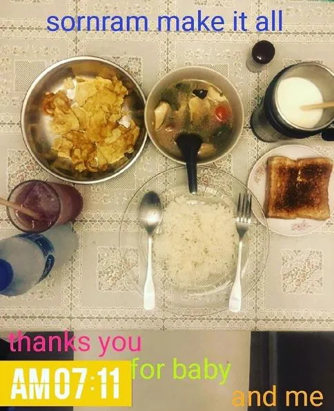 ว่าที่คุณแม่โชว์ภาพท้องน้อยๆ พร้อมแคปชั่นขำๆ "กินเยอะๆ จะได้โตกว่าต้นขาแม่นะ"