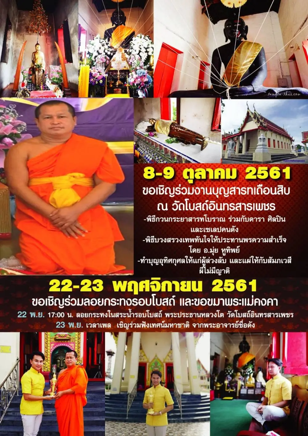 สนใจข้อมูลเพิ่มเติมหรือร่วมบุญเป็นเจ้าภาพติดต่อ เจ้าอาวาส หรือติดตามข่าวสารได้ที่