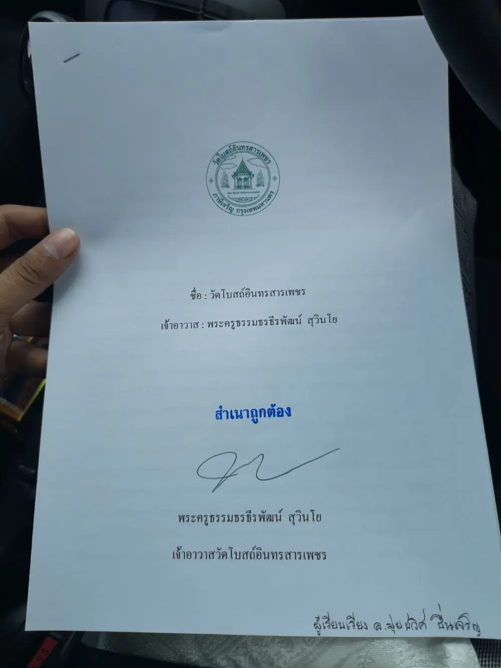 ข้อความอันประเสริฐจากพระอินทร์สู่โบสถ์วัด เขตวิสุงคามสีมา