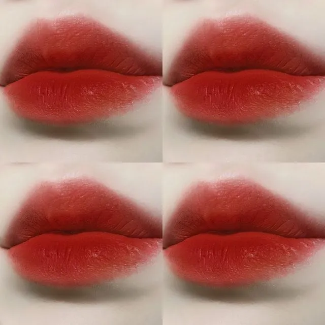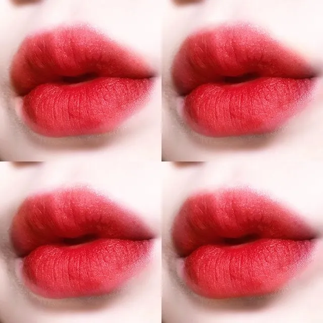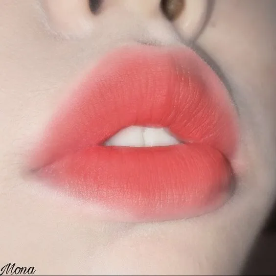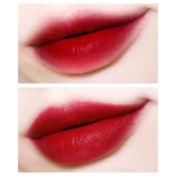 สีแดงร้อนแรงมาก ยิ่งเกลี่ยขอบปากให้ดูฟุ้ง ก็จะเพิ่มความเกาหลีให้กับลุคการแต่งหน้าได้
