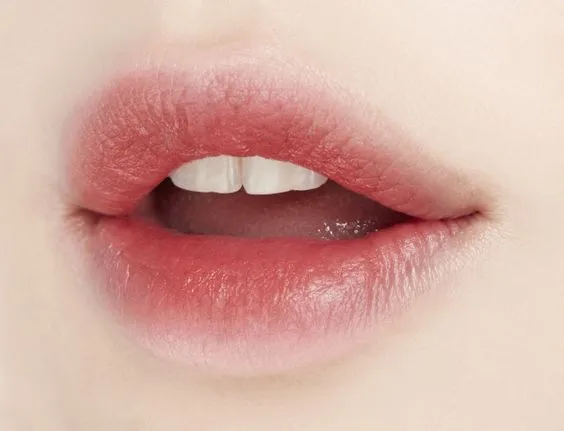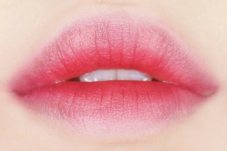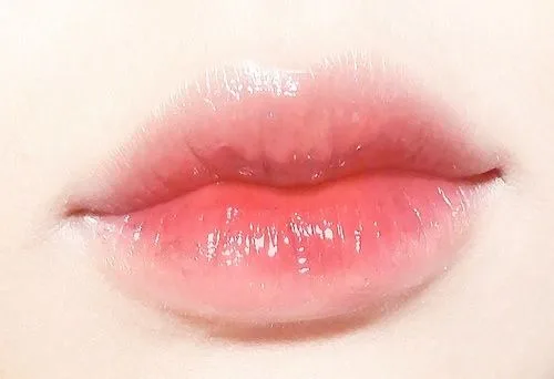 ทาลิปสีชมพูอ่อนและตามด้วยทิ้นท์สีชมพูเข้มกลางริมฝีปากช่วยให้ริมฝีปากสวยละมุน