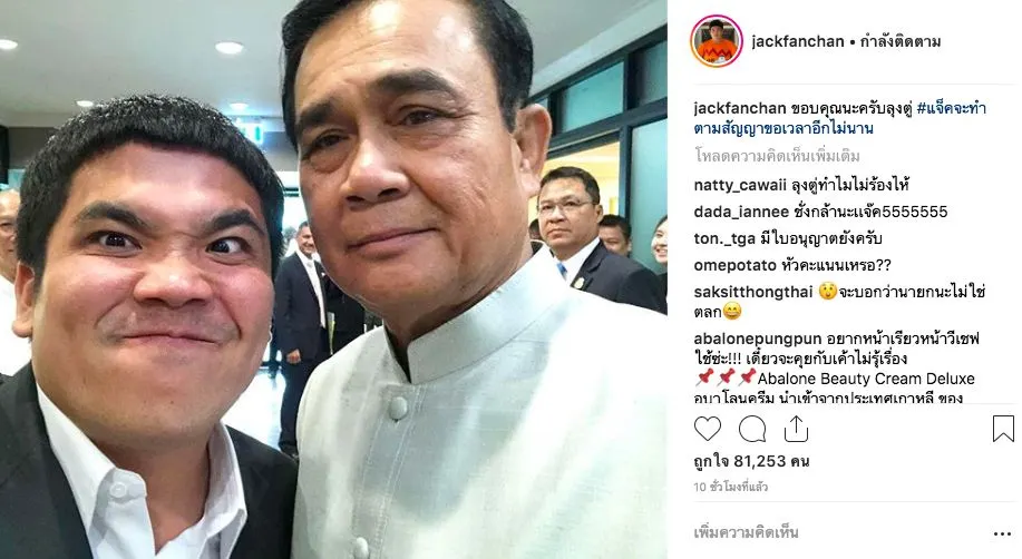 “แจ็ค แฟนฉัน”ถ่ายรูปคู่นายกตู่ พร้อมติดแฮชแท็ก