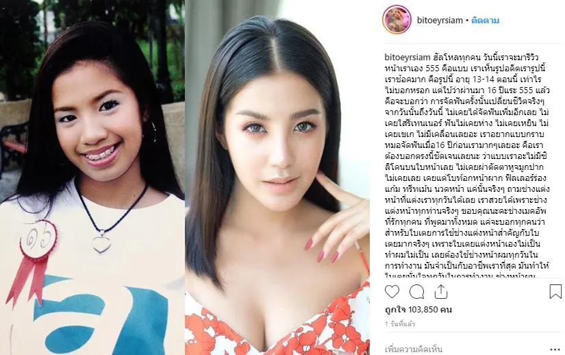 เมื่อนักร้องลูกทุ่งสาวคนสวย ใบเตย-สุธีวัน ทวีสิน หรือ ใบเตย อาร์สยาม ออกมาโพสต์อินสตาแกรมส่วนตัวเป็นรูปของตัวเองในอดีตกับปัจจุบัน พร้อมข้อความที่ย้ำว่าตนแค่ดัดฟันและใช้ช่างแต่งหน้าสุดเก่งเท่านั้น โดยที่ตนไม่เคยผ่านมีดหมอหรือทำศัลยกรรมมาเลย ดัดฟันแค่คร้งเดียว