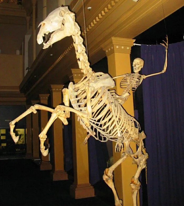 4. โครงกระดูกของมนุษย์ที่กำลังขี่โครงกระดูกของม้า
