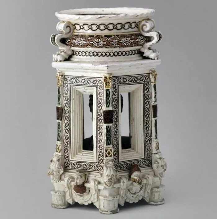 11. กระปุกเกลือ ที่ถูกออกแบบในเชิงศิลปะ 6 เหลี่ยมในฝรั่งเศส โดยอยู่ในช่วงปี 1550-1570