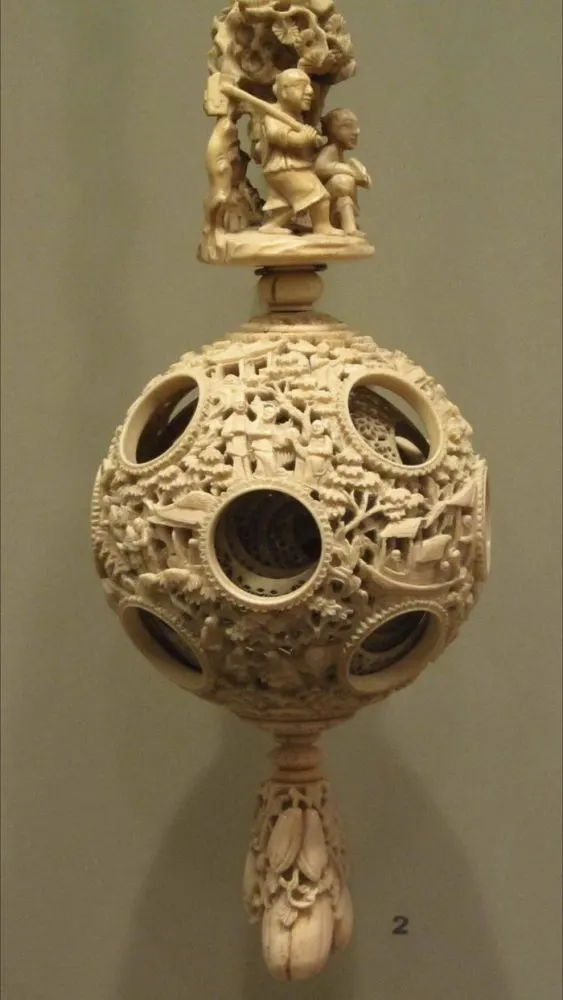 17. นี่คืองานประติมากรรมทรงกลมที่ทำมาจากงาช้าง มันถูกเรียกว่า “ผลงานของปีศาจ” ประกอบไปด้วยลูกบอลที่เคลื่อนไหวได้ 14 ลูกข้างใน เป็นหนึ่งในผลงานของราชวงศ์ชิง ในช่วงศตวรรรษที่ 19