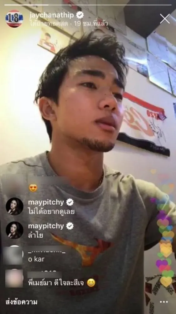 ล่าสุด สาวเมย์ ได้ออกชี้แจงผ่านทวิตเตอร์ถึงการเข้าไปแซว เจ ในไลฟ์ว่า “วันก่อนได้มีแฟนคลับของ เจ ชนาธิป คนหนึ่ง ส่งไลฟ์ของเจมาให้ดู รถติดอยู่ก็เลยกดเข้าไปดู เห็นนั่งพูดคนเดียวดูเหงา ก็เลยเข้าไปแซว และคุยเล่นด้วย หลังจากจบไลฟ์ก็คุยกันดี ทุกวันนี้มีติดต่อกันบ้าง แฮปปี้ดี”