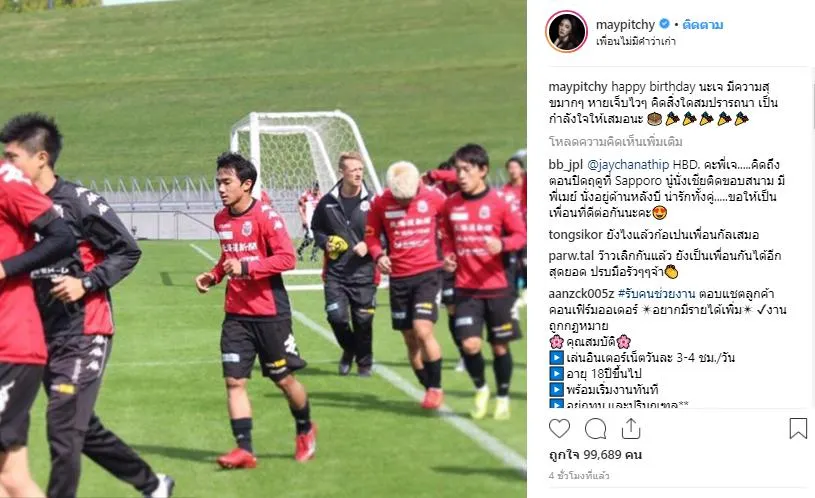 ล่าสุด (5 ต.ค.) เมย์ได้ออกมาโพสต์ภาพเจ และเขียนแคปชั่นอวยพรวันเกิดให้เจว่า “happy birthday นะเจ มีความสุขมากๆ หายเจ็บไวๆ คิดสิ่งใดสมปรารถนา เป็นกำลังใจให้เสมอนะ”