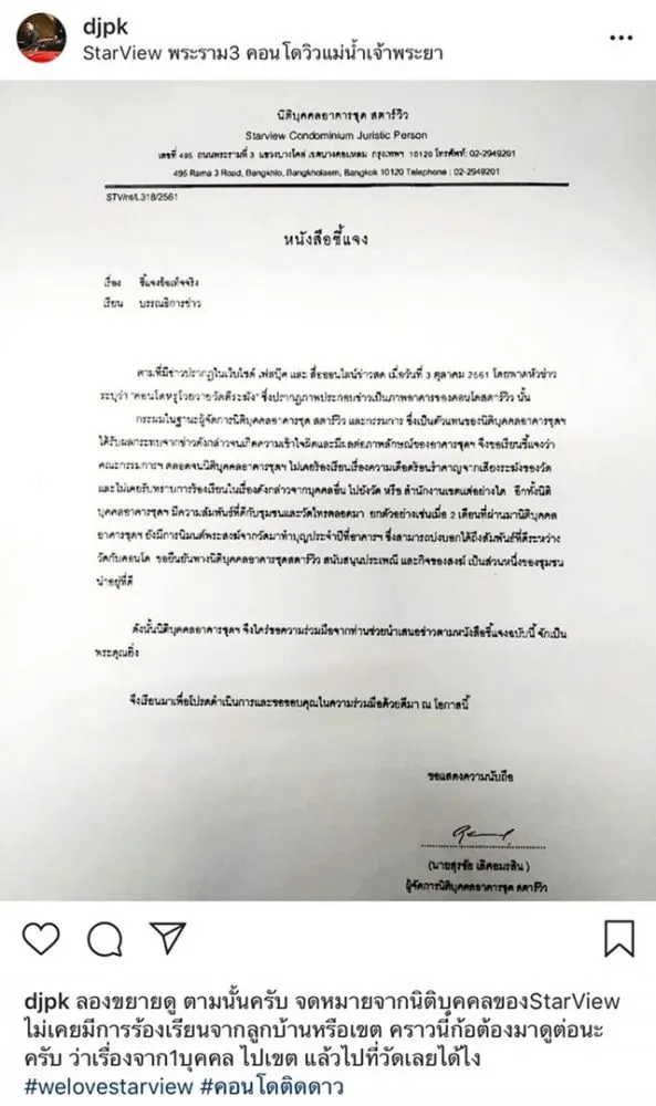 “นิติบุคคลของ StarView ไม่เคยมีการร้องเรียนจากลูกบ้านหรือเขต”