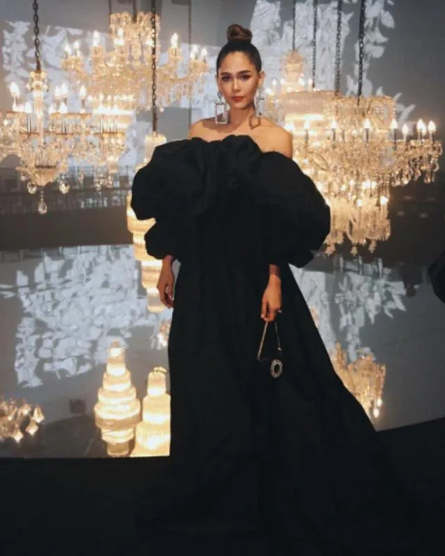 โดยล่าสุด สาวชมพู่ ได้สวมชุดราตรีเปิดไหล่สีดำฟูฟ่องจากแบรนด์ meshmuseum พร้อมกับทรงผมรวบตึง ใส่ต่างหูกรอบรูปเพชรวิบวับ แม้ว่าชุดจะดูฟูใหญ่โคร่งกว่าตัวมากแค่ไหน แต่บอกเลยว่า ขุ่นแม่ชมพู่ปังสุดๆ ไปเลยจ้า เป๊ะตั้งแต่หัวจรดเท้าเลยจริงๆ…