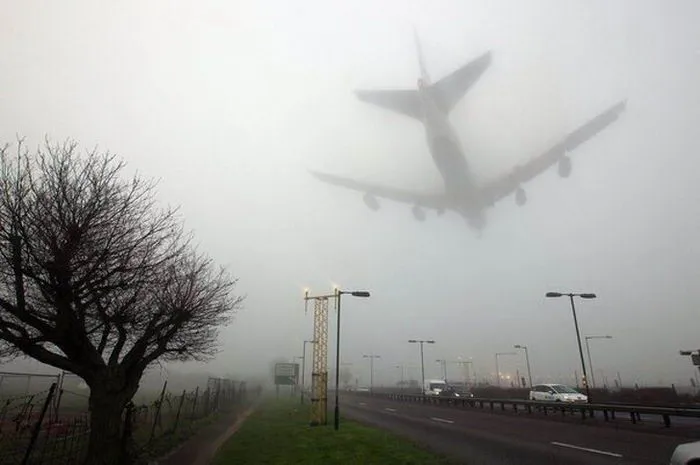 12. เครื่องบินโบอิ้งท่ามกลางหมอกหนา ดูน่ากลัวราวกับมันกำลังร่วงลงมาโหม่งโลก