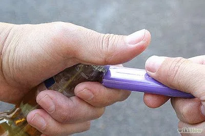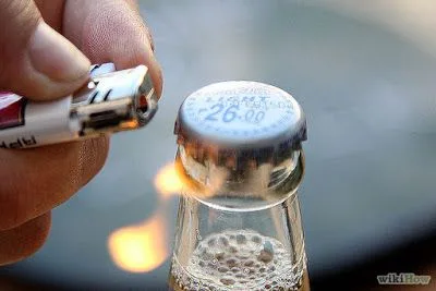 :เอาไฟลนฝาขวด เพราะโลหะเมื่อโดนความร้อนจะขยายตัว รีบๆงัดมันออกขณะที่ยังร้อนจะทำได้ง่ายกว่าฝาขวดเย็นๆ