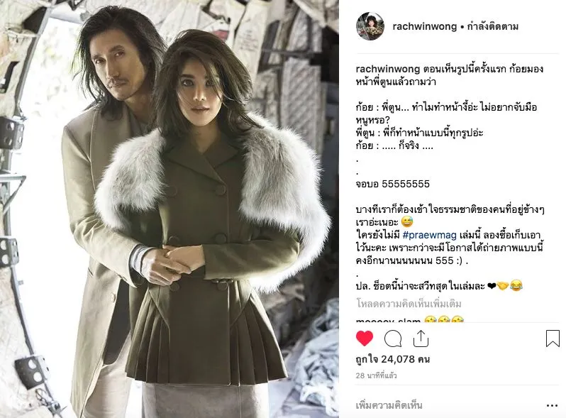ก้อย : พี่ตูน… ทำไมทำหน้างี้อ่ะ ไม่อยากจับมือหนูหรอ? พี่ตูน : พี่ก็ทำหน้าแบบนี้ทุกรูปอ่ะ ก้อย : ….. ก็จริง …. จอบอ 55555555 บางทีเราก็ต้องเข้าใจธรรมชาติของคนที่อยู่ข้างๆเราอ่ะเนอะใครยังไม่มี #praewmag เล่มนี้ ลองซื้อเก็บเอาไว้นะคะ เพราะกว่าจะมีโอกาสได้ถ่ายภาพแบบนี้ คงอีกนานนนนนนน 555 ปล. ช็อตนี้น่าจะสวีทสุดในเล่มละ
