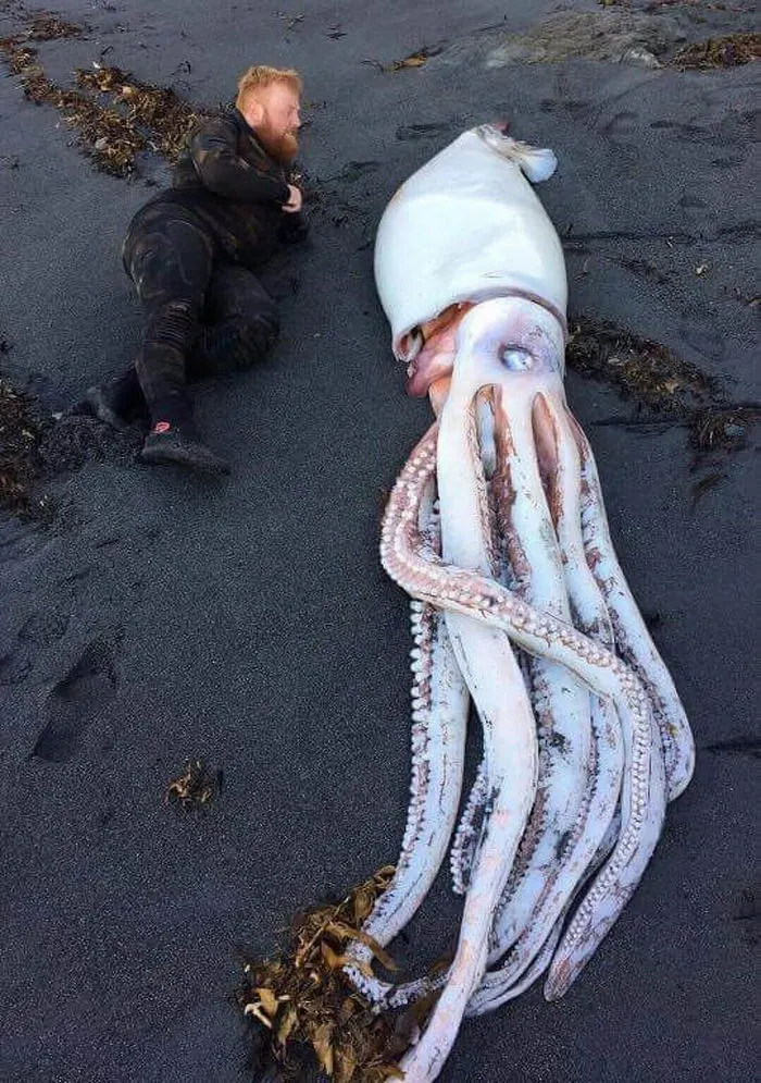 1. หมึกยักษ์ที่ขึ้นมาเคยตื้นที่ชายหาดในเมืองเวลลิงตัน ประเทศนิวซีแลนด์