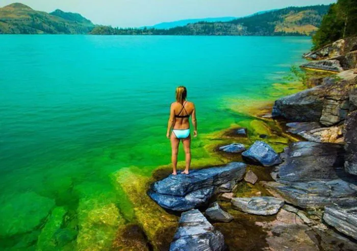 7. ทะเลสาบคาลามัลกา ในประเทศแคนาดา ที่จะมีสีเขียวในฤดูร้อน เนื่องจากหินปูนในทะเลสาบก่อตัวเป็นคริสตัลแล้วสะท้อนกับแสงแดด แต่เมื่อถึงฤดูหนาวหินปูนจะละลายจนทะเลสาบกลายเป็นสีน้ำเงิน