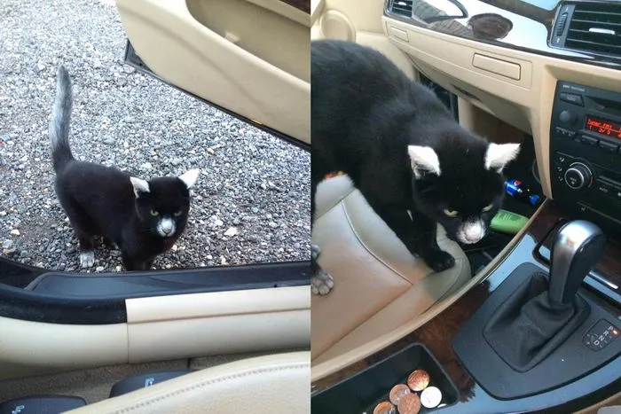 14. เมื่อจู่ๆ คุณเจอตัวประหลาดกระโดดขึ้นมาบนรถของคุณ (จริงๆ แล้วมันคือแมวดำที่เป็นโรคด่างขาว)