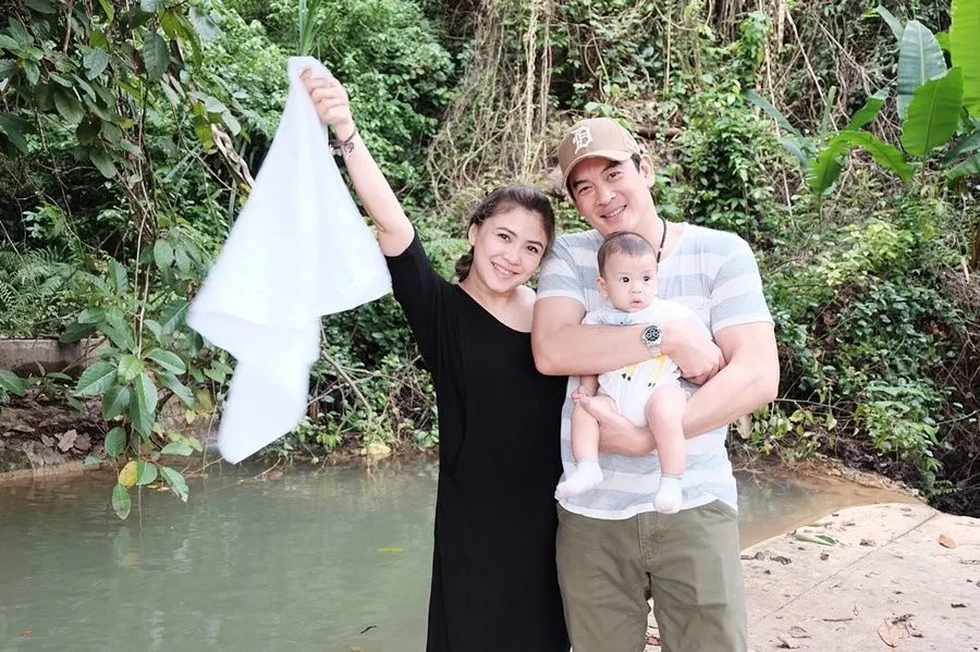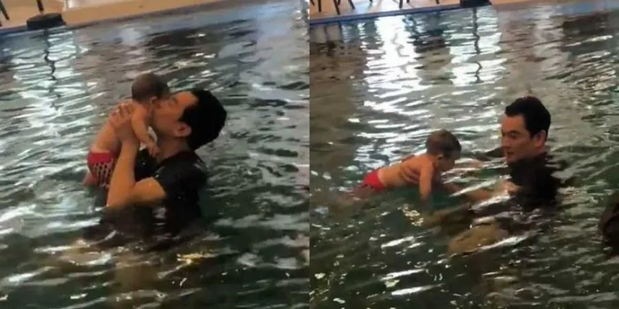 ชาคริต พาลูกชายสุที่รัก “น้องโพธิ์” ไปว่ายน้ำ แล้วจุ๊บให้กำลังใจลูก