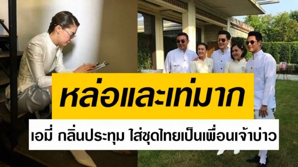 เท่มาก! “เอมี่ กลิ่นประทุม” ใส่ชุดไทยเป็นเพื่อนเจ้าบ่าว “เคลลี่ ธนะพัฒน์”