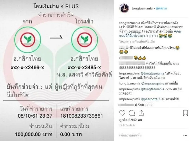 อือหือ เห็นแล้วใครก็ต้องอิจฉากันหนักมากเลยทีเดียว อยากมีพี่ชายแบบนี้ซะจริงเล๊ย!! เพราะล่าสุด หนุ่ม โตโน่ นั้นโอนเงินไปปลอบใจน้องสาวที่กำลังเศร้าหนักมาก งานนี้ทำเอายิ้มทั้งน้ำตากันไปเลยทีเดียว โดยหนุ่มโตโน่ โพสต์ว่า”เมื่อพี่ได้ยินข่าวว่า น้องกำลังเศร้า พี่ก็มีวิธีปลอบใจของพี่ พี่ไม่ถามเยอะ เพราะพี่รู้ว่าน้องชอบอะไร อะไรจะทำให้น้องยิ้ม #เจอแบบนี้ก็ยิ้มทั้งน้ำตาาาาาาาาา”โดยเป็นเงิน 1 แสนบาท ที่โตโน่โอนมา พร้อมบันทึกช่วยจำว่า “แด่ผู้หญิงที่กูรักที่สุดคนนึงในชีวิต” ทำเอาสาวๆ แห่เข้ามาคอมเมนต์ว่า พี่โน่อยากมีน้องสาวอีกคนไหม