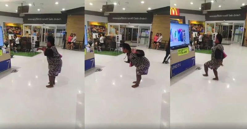 หนุ่มโชว์สเต็ปการเต้นท่าเจ้าตัวเขียว หน้าจอทีวีบูทซัมซุง ทำเอาคนมองกันทั้งห้าง