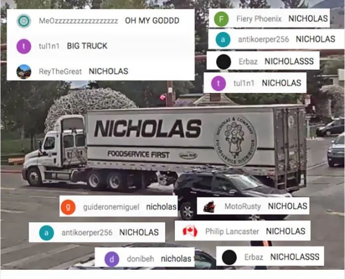 รถบรรทุกคันนี้มีคำว่า NICHOLAS ผู้คนก็จะพิมพ์คำว่า NICHOLAS กันเต็มช่องแชทไปหมด