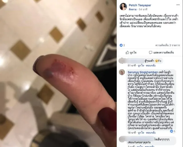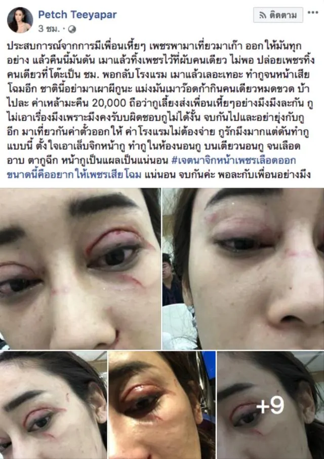 งานนี้ผลัดกันแฉ เพื่อนรัก หักเหลี่ยมโหด น้ำเพชร ออกมาโพสภาพ ใบหน้าของเธอพร้อมบรรยายเหตุการณ์ที่เกิดขึ้น